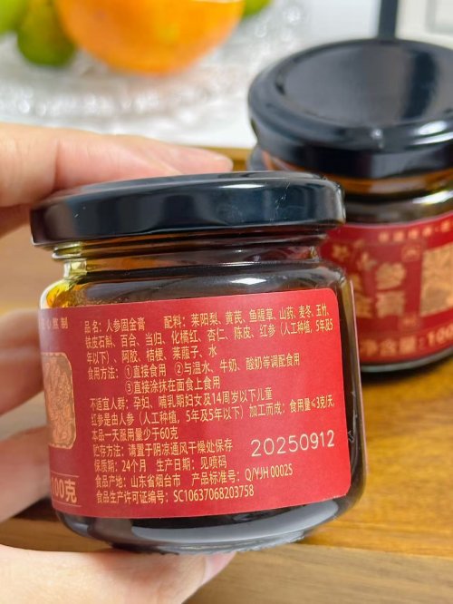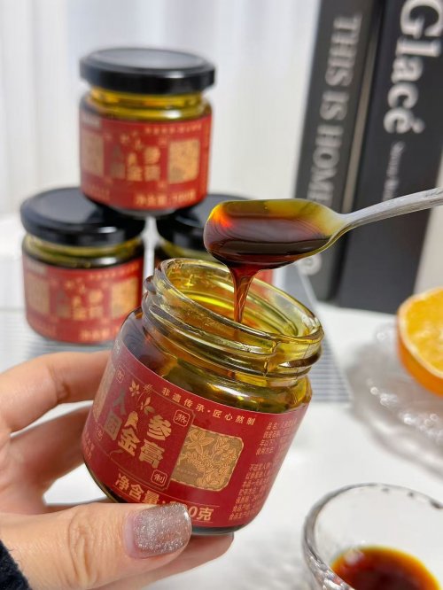 今天为大家推荐一款 【海山珍坊人参固金膏】——它以 莱阳慈梨膏+红参 为核心,搭配鱼腥草、化橘红等15味珍贵药食原材,通过 非遗古法熬制技艺 浓缩成“一勺即饮”的便携膏体。无需开火,5秒冲调,让全家轻松享受“随身润肺站”。